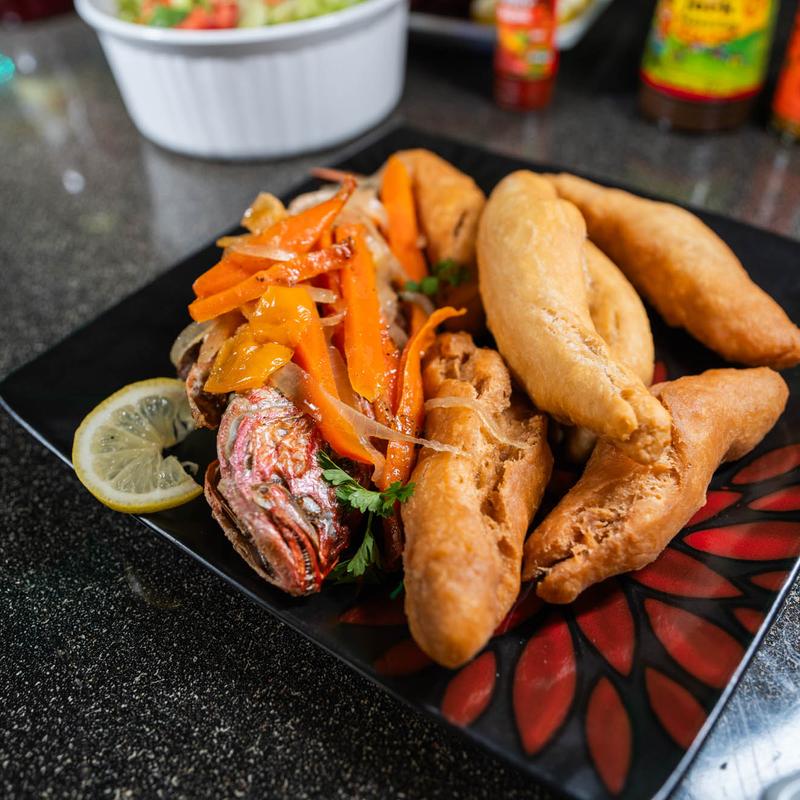 Fri. & Sat. Only | Red Snapper & Choose Two Sides: Steamed White Rice, Rice & Peas, Steamed Cabbage, Sweet Fried Plantain, or Baked Mac & Cheese